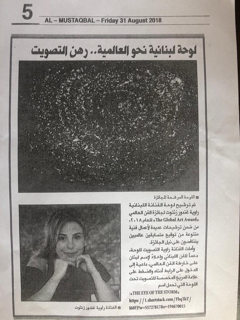 October 2018 - selected amongst the Finalists for the Global Art Award, Dubai AE