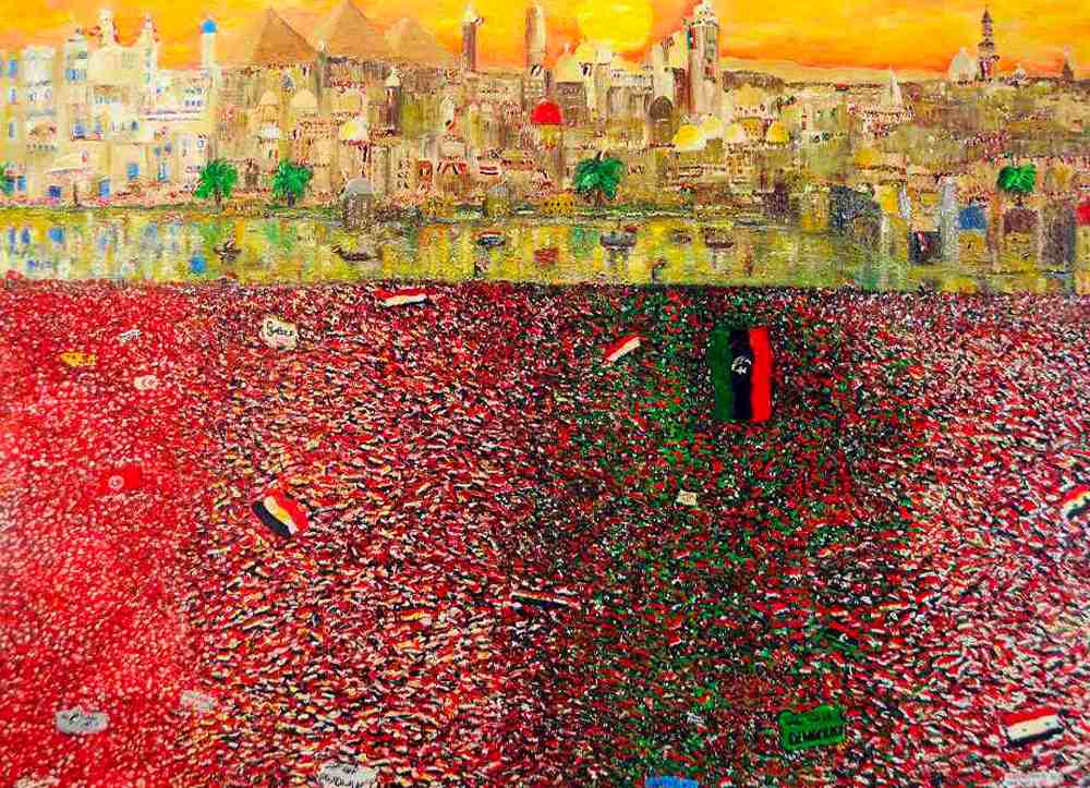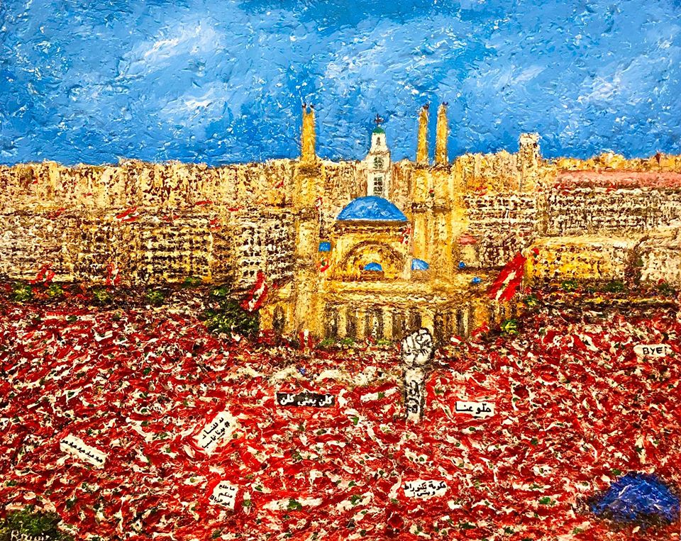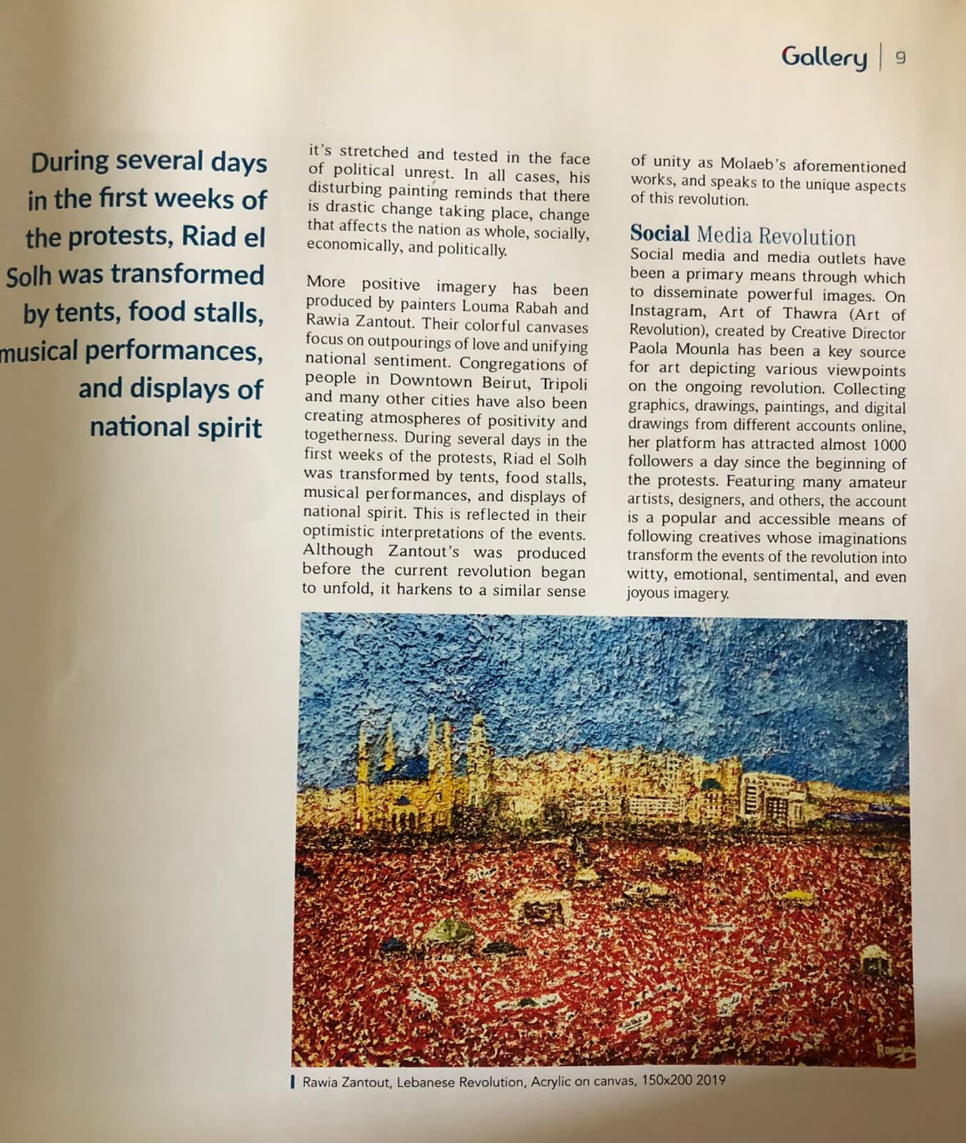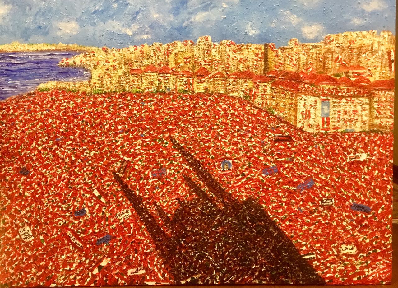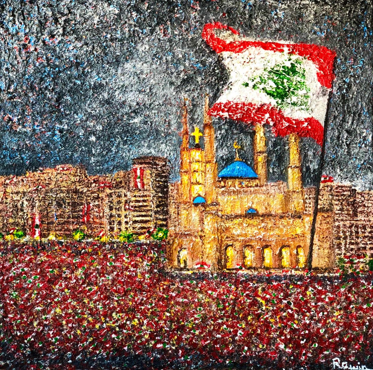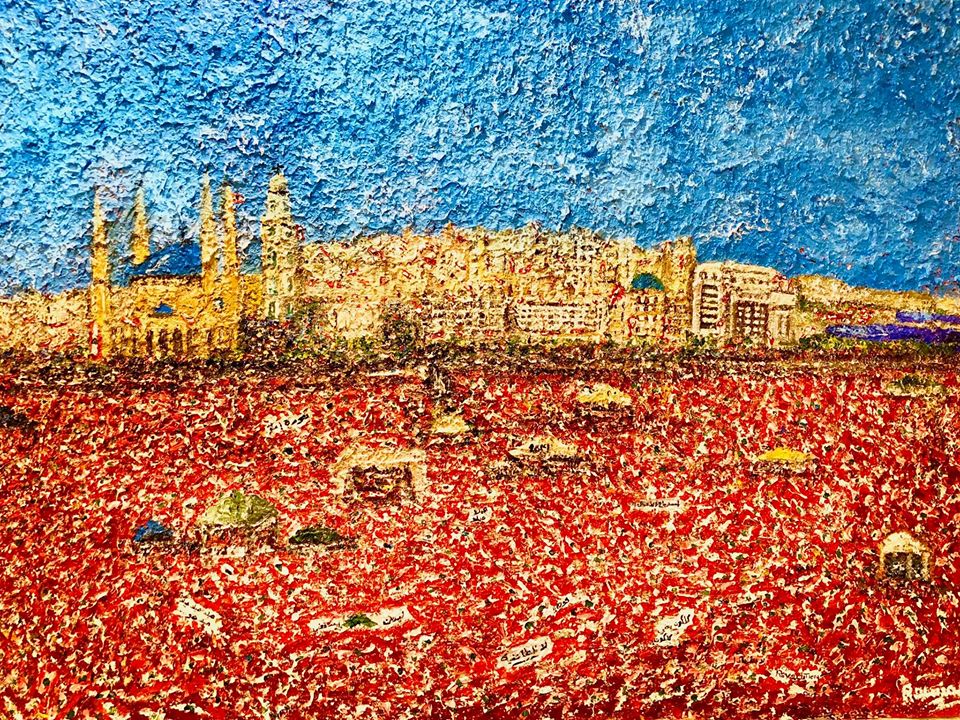 In 2007, Rawia delved into the political side of art, inspired by the turmoil in her country. She created a painting that crystallized the March 14 Revolution in Martyrs Square, which now hangs in the ex-prime minister's office of Saad Hariri.