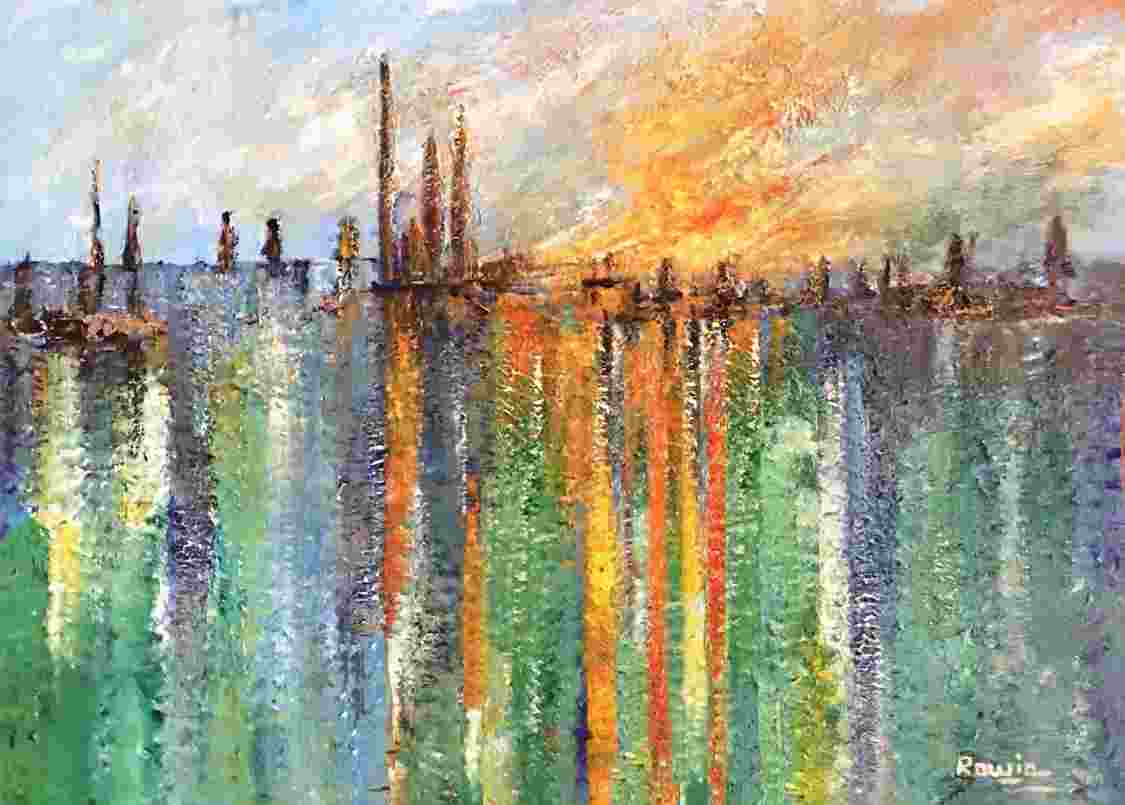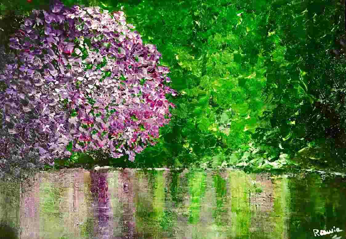 Rawia's work is heavily inspired by the Impressionist painters who lived and worked in the south of France, where she also studied. She is particularly drawn to the magical reflections present in nature and captures them beautifully in her art.