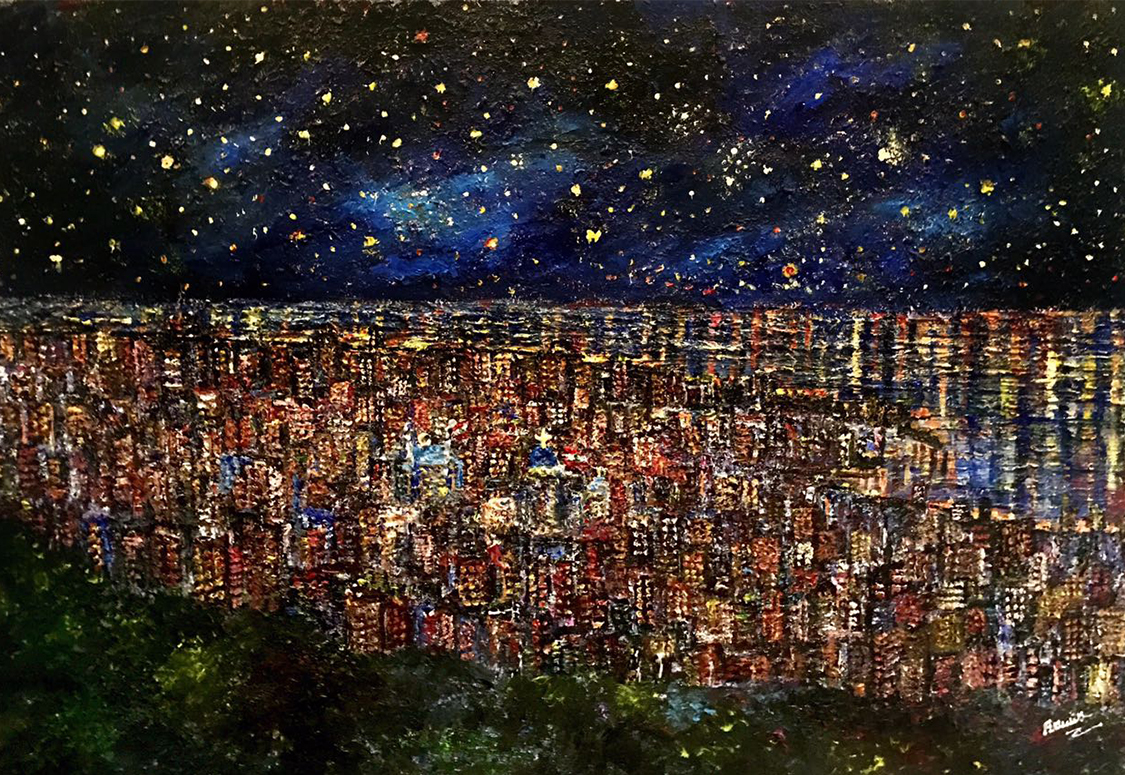 Youssef D L Keirouz - لوحة نرى فيها الكون اللامتناهي من وحي رسام يعكس بلوحاته الجمال بعد جهد متواصل وسعي /p>
